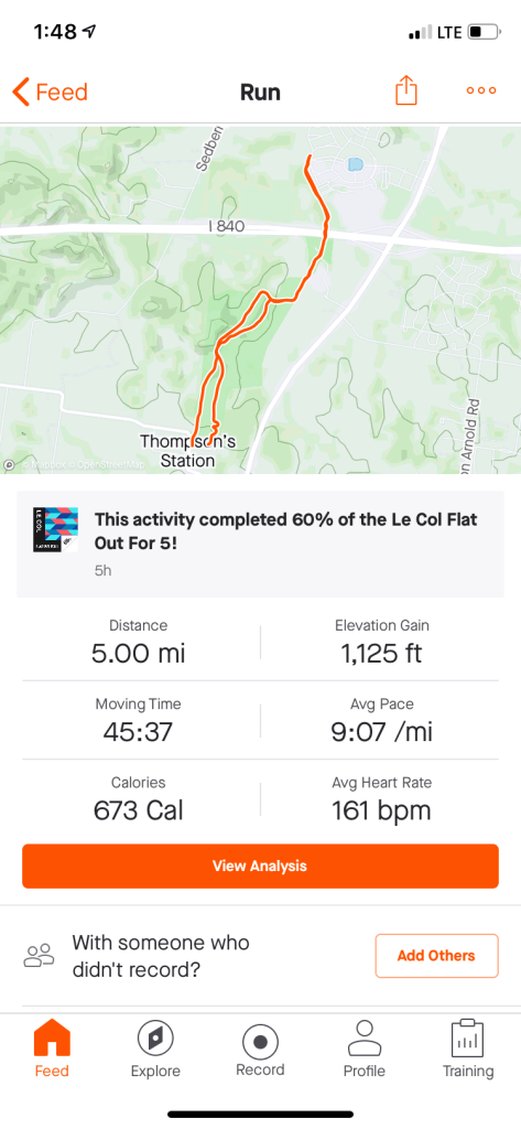 I chose to run at Preservation Park in Thompson’s Station, Tennessee. With the park only a short distance from the house, the drive was worth it.