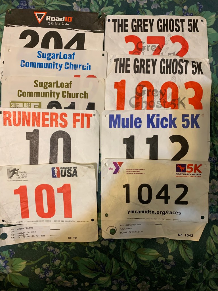 According to my running bibs, I have run in nine 5k races. With 5 of those races in Georgia and 4 of them in Tennessee since moving to Tennessee I have placed 2nd in my age group 3 times and have a PR of 20:41.