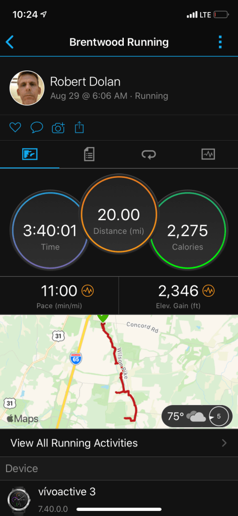 This past Saturday was my third twenty mile run of the year. I opted to run with the Franklin Road Runners at the course behind the Brentwood Library. The course took us to Smith Park, about 5 miles and back.