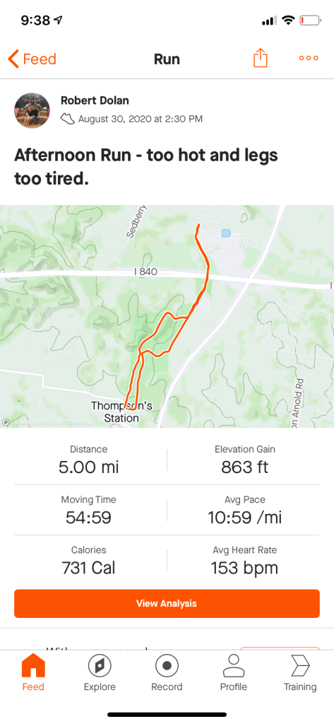 I followed that with what I was hoping to be a 10 mile run at Preservation Park. I am not sure if it was the heat/humidity or the spicy chicken sandwich, but I was only able to complete 5. Was also surprised by the elevation. Some pictures of the run.