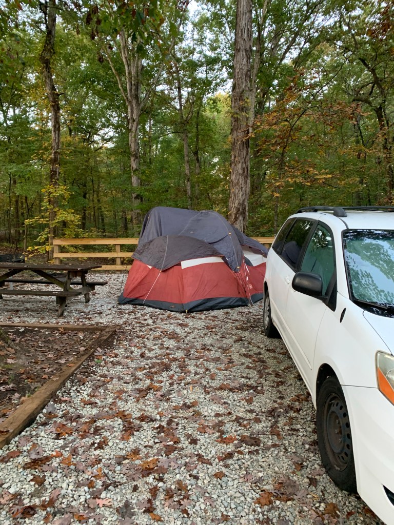 We reserved our campsite for three days ( Thursday, Friday and Saturday night). We learned there was a chance of rain Thursday night. Nicole would have liked to stay home, but I was ready to go and confident it would not rain. Well the closer we got the chance of rain increased. We arrived only to set the tent up in the rain. Well, what do you do next. Leave and get dinner at Domino’s. We get back to camp after 8pm and with all the rain decide to sleep in the van. Not bad by the way. We wake up Friday morning to find very little rain inside the tent (Thanks to the amazing work of the ladies).