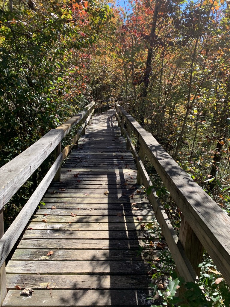 We ate breakfast which consisted of pumpkin chocolate chip made by my youngest. Then decided to explore Big Hill Pond State Park in Pocahontas, Tennessee. We started with the ranger station to ask our questions and purchase a few items (magnets and hoodie)