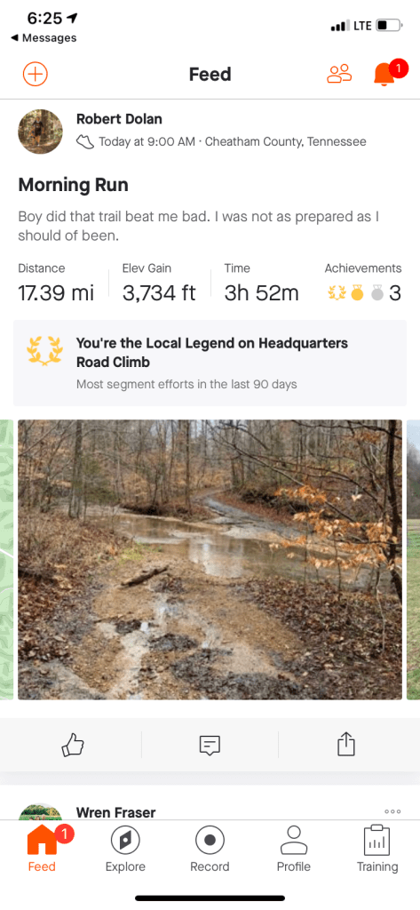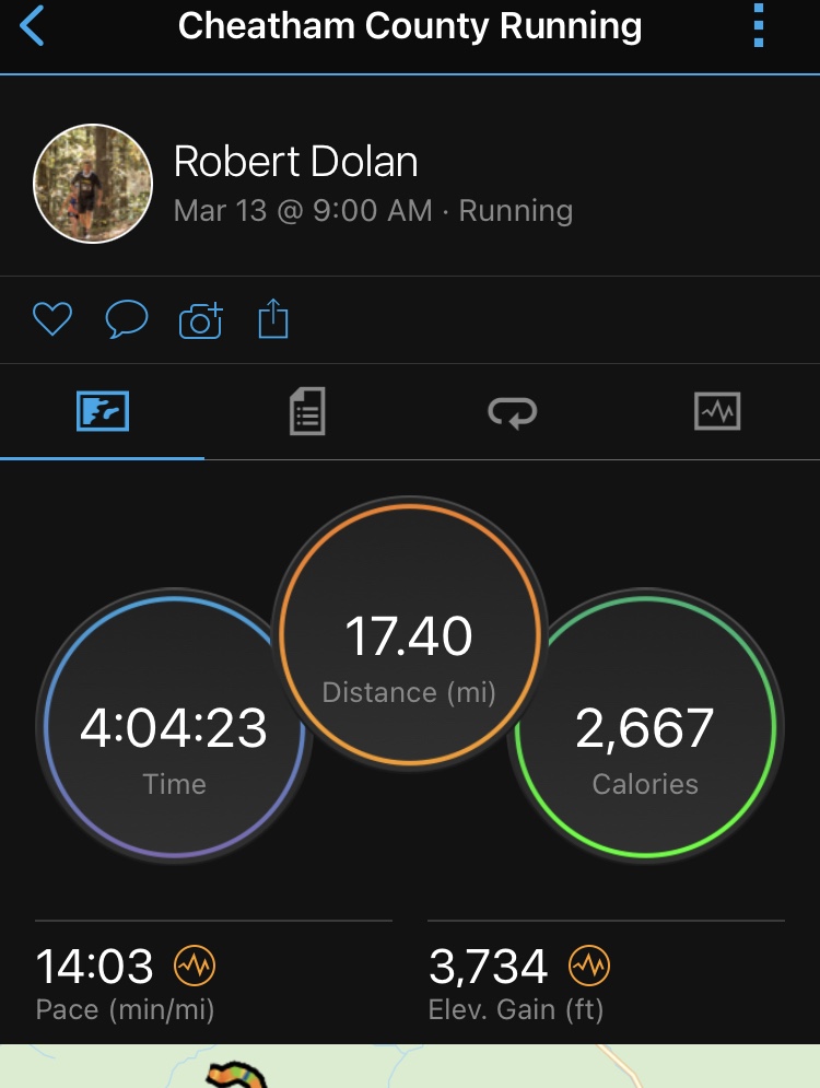 Well, during the 15.6 mile race, I ran over 17 miles due to missing a flag or being misdirected near a checkpoint. Either way, my body felt as beat up as when I completed the 31 mile race last October.