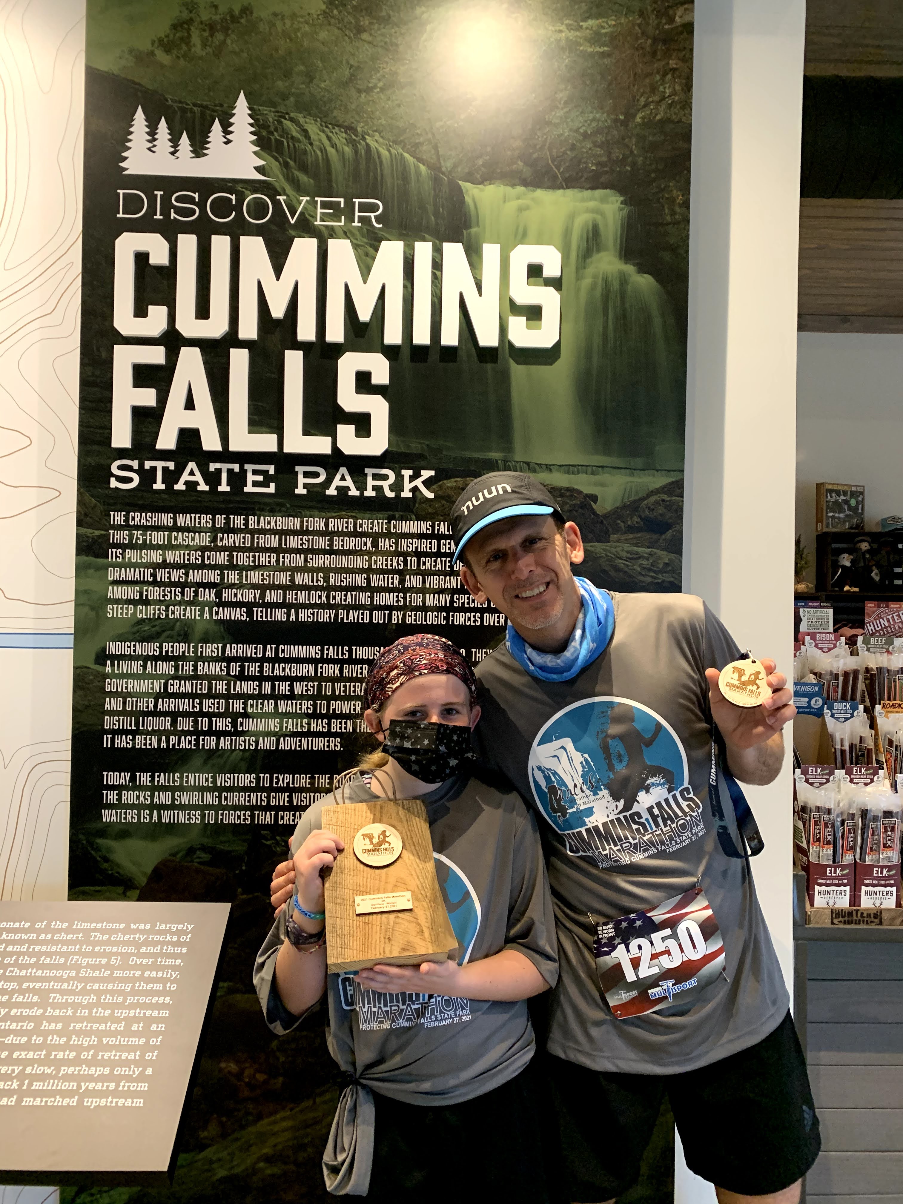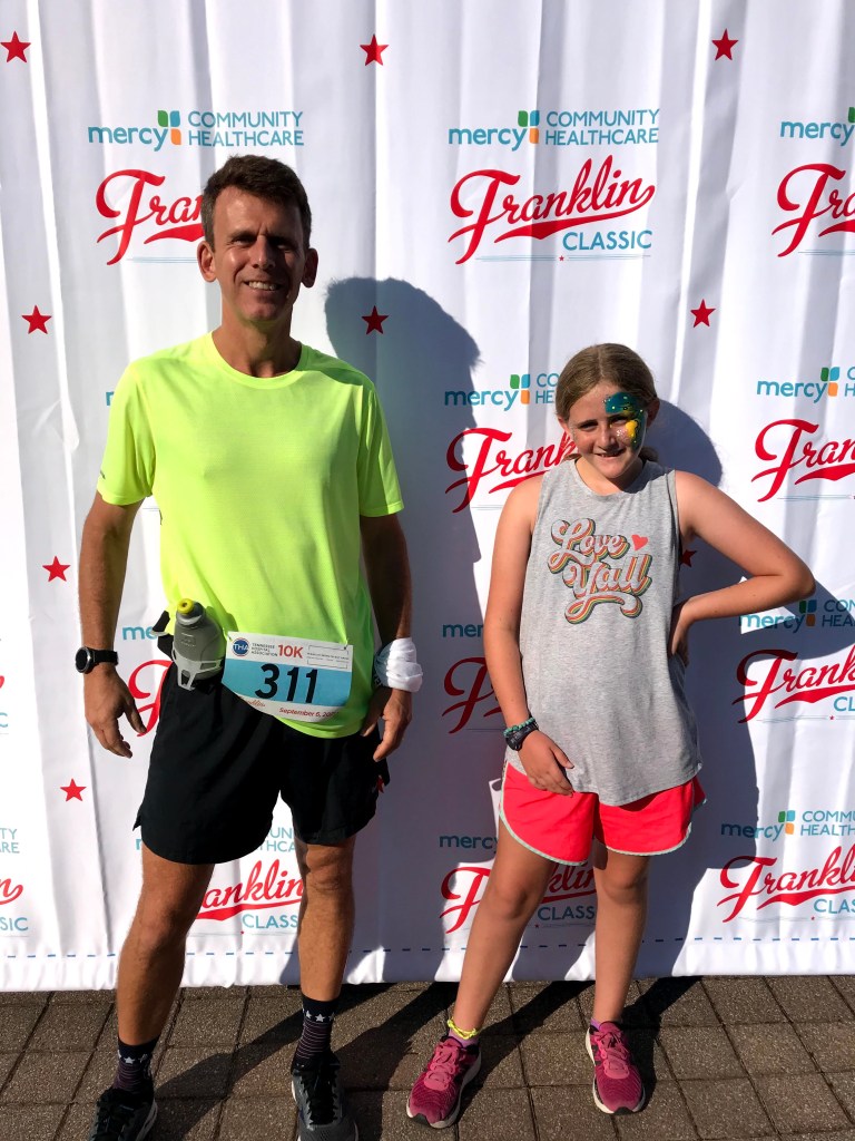 I was also able to compete in more races than in previous years. I ran the Cummins Falls 5k in February coming in 1st in my age group and my youngest coming in 3rd female overall. I ran the Young Life 5k with two of my daughters. I ran the Franklin Classic 10k in September with my youngest and several of her friends. In March I ran the Music City Ultra (25k). This was a difficult trail race where I got lost more than once. Probably my slowest trail race at that distance as well. In November I ran the Huntsville Half winning the Master’s Division and running a PR of 1:32:40. My final race of the year was the Bell Ringer 50k which I finished in just over 6 hours which was a PR and again the fastest old guy. Some Pictures from the races are below.