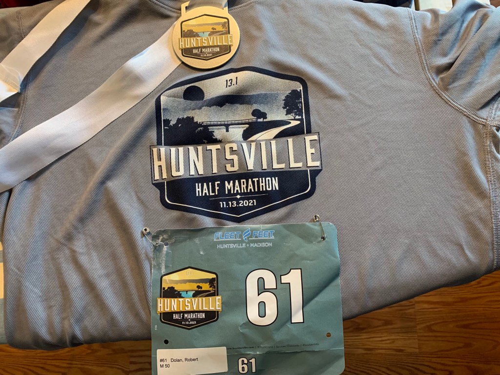 In November I signed up to run the Nuun Half Marathon as a virtual race. Well, my daughter had a Taekwondo tournament in Huntsville, so signed up for the Huntsville Half. She ended up with a few medals and I won the Master’s division while also getting my PR.