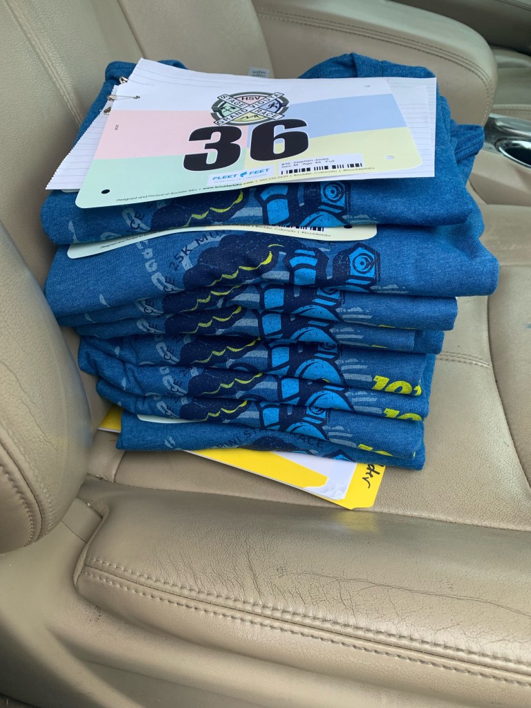 I was invited to participate in the event with some guys in the F3 group from Spring Hill. We were 10 of the 200 participants. Since I was one of the first of our group to arrive, I picked up all the t-shirts and bibs.