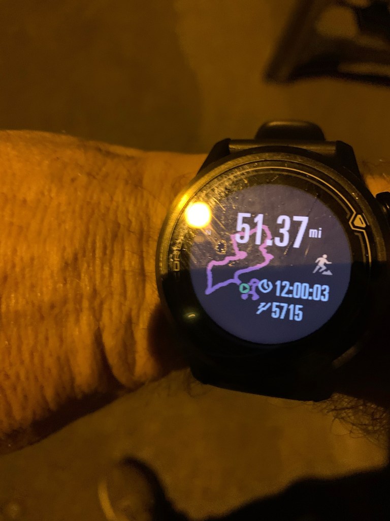 When I finished my 50 miles I came to check in and the race director informed me that I signed up for the 12 hour race and had 15 minutes left. So I managed an additional 1 and finally was able to call it a day.
