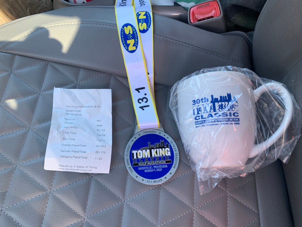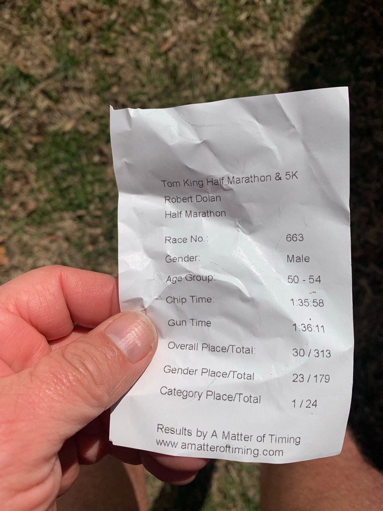 Strava showed me that this was my 3rd fastest time in the half marathon, but it was fast enough to be 1st in my age group and in the top 10%.